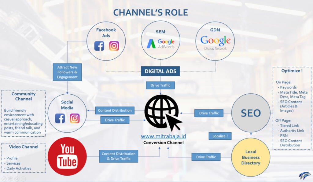 - Website: As the central conversion channel, optimized for SEO